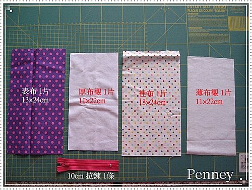 表布、裡布各一片(尺寸13×24cm,已含1cm縫份)